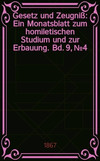 Gesetz und Zeugniß : Ein Monatsblatt zum homiletischen Studium und zur Erbauung. Bd. 6, № 9