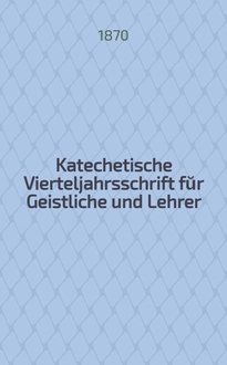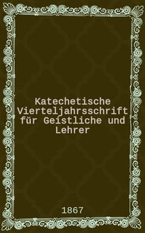 Katechetische Vierteljahrsschrift fŭr Geistliche und Lehrer : Ein Beiblatt zum homiletischen Monatsblatt "Gesetz und Zeugniß". Jg.3 1867, H. 3:. - 1867