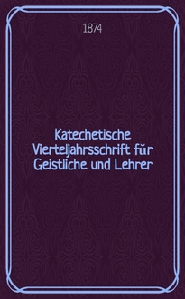 Katechetische Vierteljahrsschrift fŭr Geistliche und Lehrer : Ein Beiblatt zum homiletischen Monatsblatt "Gesetz und Zeugniß". Jg.3 1867, H. 3. В книге описывается