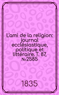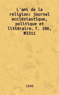 L'ami de la religion : journal ecclésiastique, politique et littéraire. T. 96, № 2924:. - 1838