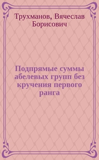 Трухманов В.Б. Подпрямые суммы абелевых групп без кручения ранга 1 : монография / В.Б. Трухманов; Национальный исследовательский Нижегородский государственный университет им. Н.И. Лобачевского, Арзамасский филиал. - Арзамас : Арзамасский филиал ННГУ, 2016. - 159 с. ; 20 см. - Библиогр.: с. 155-159 (45 назв.)