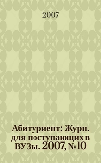 Абитуриент : Журн. для поступающих в ВУЗы / Учредитель: Науч.-техн. центр "Университетский". 2002, № 8 (75):. - 2002
