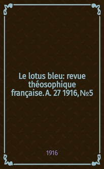 Le lotus bleu : revue théosophique française. A. 22 1911, № 5:. - 1911