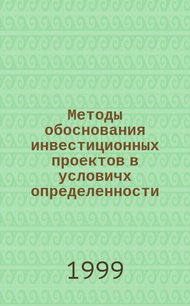 Методы обоснования инвестиционных проектов в условичх определенности : учебное пособие : для студентов и слушателей экономических факультетов университетов