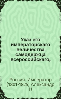 Указ его императорскаго величества самодержца всероссийскаго, : Об отмене запрещения на вывоз за границу хлеба и вина. В книге говорится