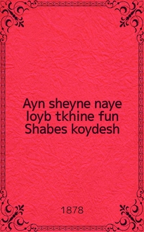 Дик А.-М. Ayn naye modisher shidukh der bay nokh ayne sheyne und vare geshikhte, vos var gisheen mit dem yuden Yizrael Abulepo fun Damask mit dem groysin Yibrahim pasha fun Egipten / Meas A.M.D איין נייע מאדישער שידוך דער בייא נאך איינע שיינע אונד וואהרע געשיכטע וואס וואר גישעהען מיט דעם יודען איזראעל אבולעפא פון דמשק מיט דעם גרויסין אברהים פאשא פון עגיפטען / מאת א.מ.ד. - Vilna : Bidfus r. Yosif Reuven ben r. Menakhem Man Rom, 1868. - 32 с. ; 18 см. - ווילנא : בדפוס ר׳ יוסף ראובן בר׳ מנים מן ראם, תרכ״ט. - 32 с. ; 18 см. - Вильна : Типография р. Иосифа-Реувена сына р. Менахема-Манна Ромма, 1868. - 32 с. ; 18 см