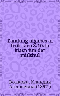 Лойцкер Х., Шапиро М. Zamlung sistematishe diktantn : Far der onfang- un mitlshul / Kh. Loytsker, M. Shapiro זאמלונג סיסטעמאטישע דיקטאנטנ : פאר דער אָנפאנג- אונ מיטלשול / כ. לויצקער, מ. שאפּיראָ. - Kiev : Melukhe-farlag far di natsionale minderkhaytn in USSR, 1939. - 144 с. ; 21 см. - קיעוו : מעלוכע-פארלאג פאר די נאציאָנאלע מינדערהייטנ אינ אססר, 1939. - 144 с. ; 21 см. - Киев : Укргоснацмениздат, 1939. - 144 с. ; 21 см