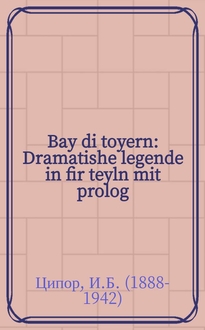 Тененбойм Ш. Bay der velt tsugast : Dertseylungen un reportazshn / Sh. Tenenboym ביי דער וועלט צוגאסט : דערציילונגען און רעפּאָרטאזשן / ש. טענענבוים. - Varshe : Literarishe bleter, 1937. - 192 с. : Портр. ; 20 см. - (Premie tsu di "Literarishe bleter" ; № 1). - (פּרעמיע צו די ליטערארישע בלעטער ; №1). - (Премия к "Литературным листкам" ; № 1). - ווארשע : ליטערארישע בלעטער, 1937. - 192 с. : Портр. ; 20 см. - (Premie tsu di "Literarishe bleter" ; № 1). - (פּרעמיע צו די ליטערארישע בלעטער ; №1). - (Премия к "Литературным листкам" ; № 1). - Варшава : Литературные листки, 1937. - 192 с. : Портр. ; 20 см. - (Premie tsu di "Literarishe bleter" ; № 1). - (פּרעמיע צו די ליטערארישע בלעטער ; №1). - (Премия к "Литературным листкам" ; № 1)