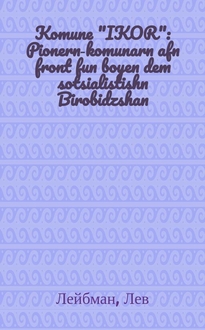 Лейбман Л. Komune "Yikor" : Pionern-komunarn afn front fun boyen de sotsialistishn Birobidzshan / A. Leybman (Lev) קאָמונע "איקאָר : פּיאָנערנ-קאָמונארנ אפנ פראָנט פונ בויענ דעמ סאָציאליסטישנ ביראָבידזשאנ / א. לייבמאנ (לעוו. - Minsk : Melukhe-farlag fun Vaysrusland. Natssekter, 1932. - 68 c. : Ил. ; 22 см. - מינסק : מעלוכע-פארלאג פונ ווייסרוסלאנד. נאצסעקטער, 1932. - 68 c. : Ил. ; 22 см. - Минск : Государственое издательство Белоруссии. Нацсектор, 1932. - 68 c. : Ил. ; 22 см