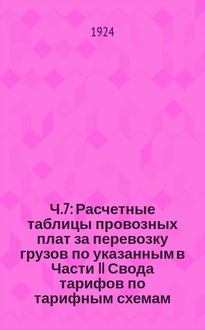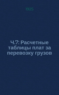 Ч.7 , Расчетные таблицы плат за перевозку грузов : Введена в действие с 1 янв. 1925 г. - 132 с