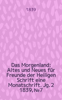 Das Morgenland : Altes und Neues für Freunde der Heiligen Schrift eine Monatschrift. Jg. 3 1840, № 2