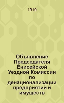 Владимирский уездный комиссариат по военным делам. Объявление Владимирского уездного военного комиссариата, 28 янв. 1919 г., г. г. Владимир: [Об оказании помощи солдатам, вернувшимся из плена, и их семьям : листовка / Владимирский уезд. исполнительный комитет Советов]. - [Владимир] : Тип. Сов. Влад. губ. испол. к-та, [1919, янв.]. - 1 с. ; 32х17 см