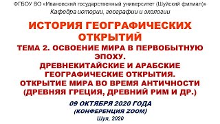 Видео к лекции 09.10.2020 по теме: "Освоение мира в первобытную эпоху. Древнекитайские и арабские географические открытия. Открытие мира во ...