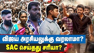 In this video public shared their opinion about SAC's new party in Vijay's name. And also shared their wish and refuse about vijay's future idea about political.