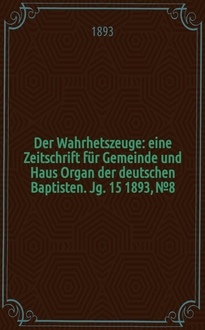 Der Wahrhetszeuge : eine Zeitschrift für Gemeinde und Haus Organ der deutschen Baptisten. Jg. 15 1893, № 37