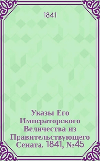 [Указы Его Императорского Величества из Правительствующего Сената. 1841, № 95/97 (5 дек.): : Прил. к № 97 "Сенатских ведомостей". - 1841