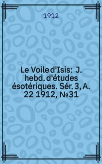 Le Voile d'Isis : J. hebd. d'études ésotériques. Sér. 3, A. 22 1912, № 32:. - 1912