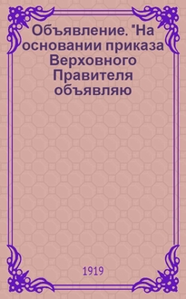 Объявление. "От комиссии Губправтруд (по правильному использованию труда и освобождения привлекаемых в порядке трудовой повинности), при губернском Управлении охраны труда..." : [листовка]. - Рязань : Гос. тип. № 1, [1920], март, 29. - 1 с. ; 31х18 см