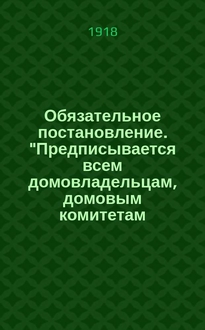 Обязательное постановление, 1920 г., 12 февр.: [Объявляется текст Постановления Пензенского губ. отдела труда об учете трудоспособного населения Рузаевки : листовка