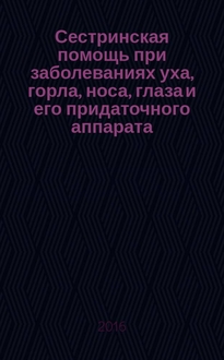 Сестринская помощь при заболеваниях уха, горла, носа, глаза и его придаточного аппарата : учебное пособие для медицинских училищ и колледжей : учебное пособие для студентов образовательных учреждений среднего профессионального образования, обучающихся по направлению подготовки 34.02.01 (060501) "Сестринское дело" / [Елена Юрьевна Маркова - д.м.н., проф. и др.]; под ред. А. Ю. Овчинникова. - Москва : ГЭОТАР-Медиа, 2017. - 168, [1] с. : ил., табл., цв. ил. ; 22 см. - Библиогр. в конце частей. - Предм. указ.: с. 167