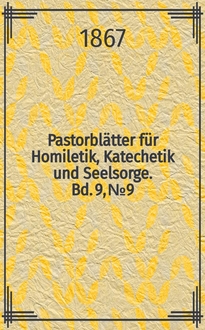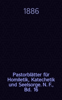 Pastorblätter für Homiletik, Katechetik und Seelsorge. N. F., Bd. 18 (30), № 10:. - 1888