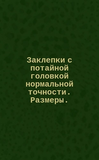 ГОСТ Р ИСО 15978-2017. Заклепки "слепые" с открытым концом, разрывающимся вытяжным сердечником и потайной головкой (корпус из алюминиевого сплава и стальной сердечник) [Текст =] : Open end blind rivets with break pull mandrel and countersunk head (aluminium alloy body and a steel mandrel) : национальный стандарт Российской Федерации : издание официальное : утвержден и введен в действие Приказом Федерального агентства по техническому регулированию и метрологии от 24 октября 2017 г. № 1507-ст : введен впервые : дата введения 2019-01-01 / подготовлен ФГУП "Всероссийский научно-исследовательский институт стандартизации и сертификации в машиностроении". - Москва : Стандартинформ, 2017. - III, 7 c. : ил., табл. ; 29 см