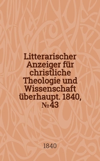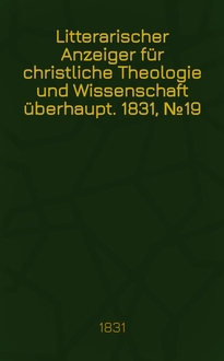 Litterarischer Anzeiger für christliche Theologie und Wissenschaft überhaupt. 1830, № 41:. - 1830