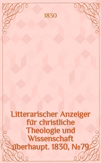 Litterarischer Anzeiger für christliche Theologie und Wissenschaft überhaupt. 1831, № 58:. - 1831