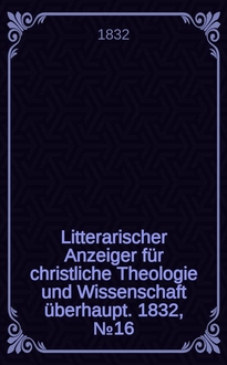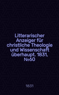 Litterarischer Anzeiger für christliche Theologie und Wissenschaft überhaupt. 1831, № 65:. - 1831
