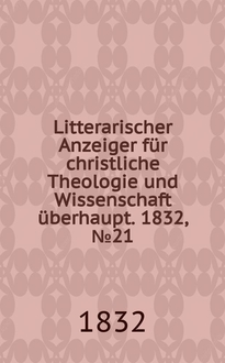 Litterarischer Anzeiger für christliche Theologie und Wissenschaft überhaupt. 1841, № 62:. - 1841