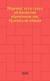 Антонов А. Вěренер : хута сахал пěлекенсене вěрентекен шк. ěçлемелли кěнеке / А. Антонов; ВЧК л/б Главполитпросвета НКП РСФСР. - 3-мěш хут тухаť. - Мускав : СССР-ти халӑхсен тӗп ист-ви, 1930. - 322, I-VI c. : ил., портр. ; 22 см
