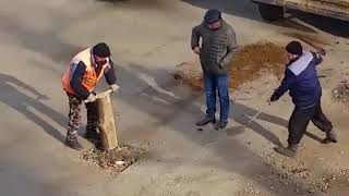 21-й век. Нанотехнологии вовсю применяются при ремонте дорог в России. Прям аж гордость берет! Не иначе Сколково руку приложило!