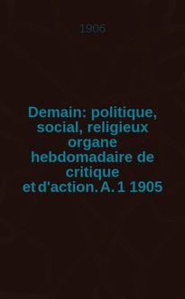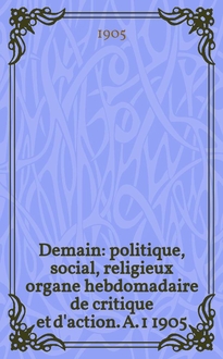 Demain : politique, social, religieux : organe hebdomadaire de critique et d'action. A. 1 1905/1906, № 40:. - 1906