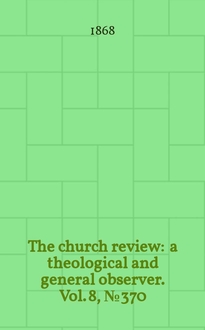 The church review : a theological and general observer. Vol. 7, № 325:. - 1867