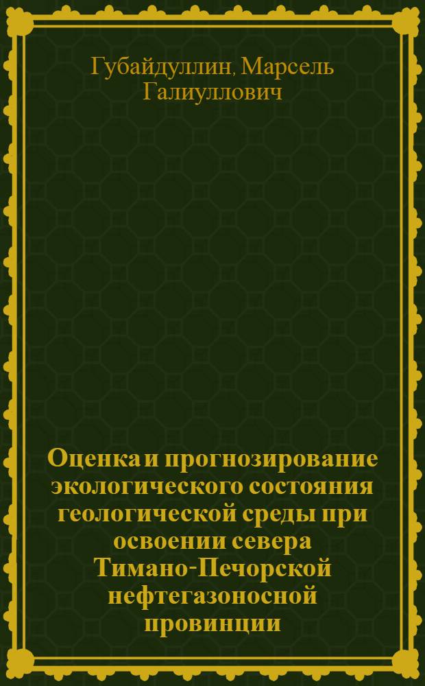 Оценка и прогнозирование экологического состояния геологической среды при освоении севера Тимано-Печорской нефтегазоносной провинции : монография
