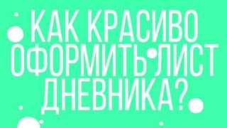 Всем привет В этом выпуске я оформляла первый лист дневника . Надеюсь что вы взяли что - то с этого ролика. Мой инстаграмм: ...