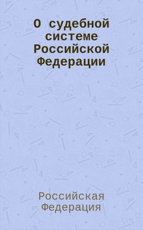 О судебной системе Российской Федерации : Федеральный конституционный закон N° 1-ФКЗ : принят государственной Думой 23 октября 1996 года : одобрен Советом Федерации 26 декабря 1996 года : изменения: от 15 декабря 2001 г. N° 5-ФКЗ; от 4 июля 2003 г. N° 3-ФКЗ; от 5 апреля 2005 г. N° 3-ФКЗ; от 27 декабря 2009 г. N° 9-ФКЗ. О статусе судей в Российской Федерации : закон Российской Федерации N° 3132-1 изменения: от 14 апреля 1993 г. N° 4791-1