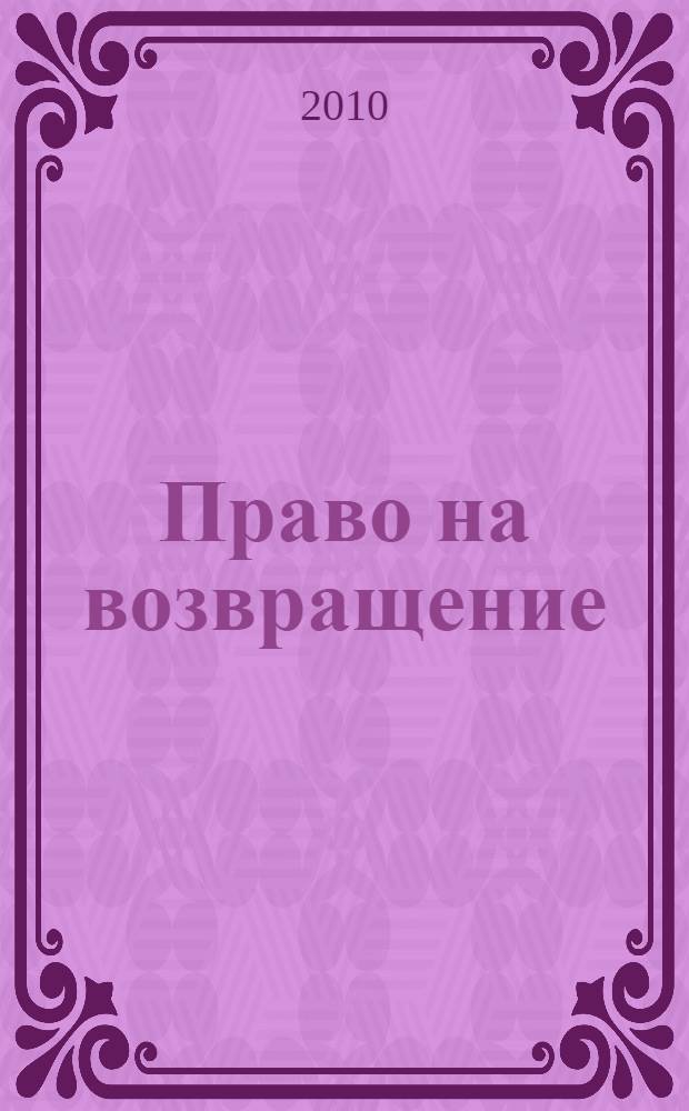 Винтер Л. Право на возвращение : Израиль 2024? / Леон Де Винтер; пер. с голланд. И. Гривниной. - Москва ; Иерусалим : Мосты культуры издатель М. Гринберг Gesharim, 2010. - 425, [2] с. ; 21 см