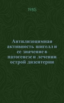 Прусс, Виктор Федорович. Антилизоцимная активность шигелл и ее значение в формировании реконвалесцентного бактерионосительства при дизентерии : Автореф. дис. на соиск. учен. степ. к.м.н / Челяб. гос. мед. ин-т. - Челябинск, 1989. - 19 с. - Библиогр.: с. 18-19