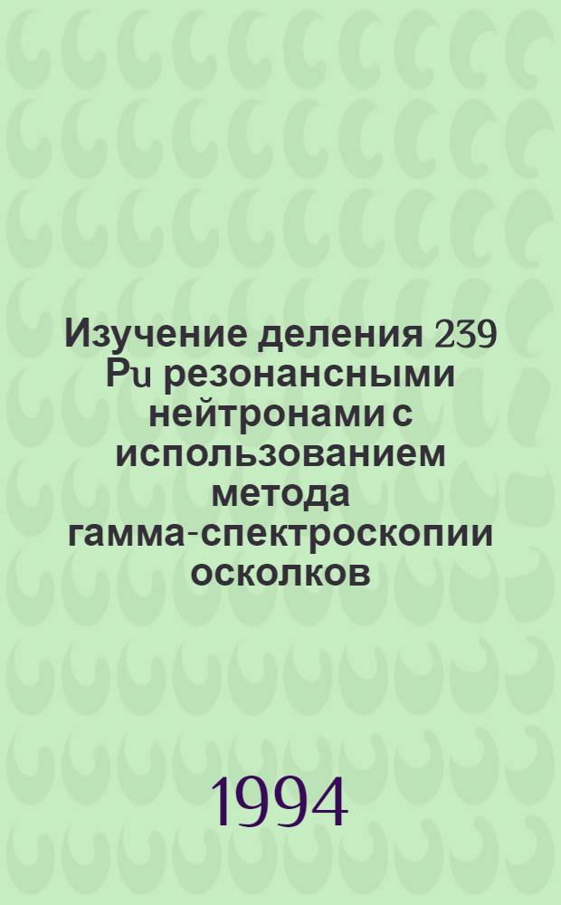Гундорин, Николай Алексеевич. Изучение деления 239 Рu резонансными нейтронами с использованием метода гамма-спектроскопии осколков : Автореф. дис. на соиск. учен. степ. к.ф.-м.н / Объед. ин-т ядер. исслед. - Дубна, 1994. - 15 с. - Библиогр.: с. 13-15 Оформление реферата