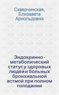Скверчинская, Елизавета Арнольдовна. Эндокринно - метаболический статус у здоровых людей и больных бронхиальной астмой при полном голодании : Автореф. дис. на соиск. учен. степ. к.б.н. : Спец. 03.00.13 / Ин-т эволюц. физиологии и биохимии им. И. М. Сеченова РАН, Рос. ин-т профилакт. медицины. - Спб, 1995. - 22 с. - Библиогр.: с. 22 Защита диплома