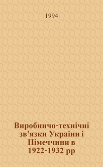 Виробничо-технiчнi зв'язки Украiни i Нiмеччини в 1922-1932 рр : Автореф. дис. на соиск. учен. степ. к.ист.н