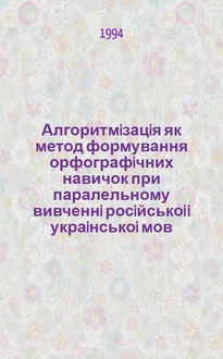 Алгоритмiзацiя як метод формування орфографiчних навичок при паралельному вивченнi росiйськоi i украiнськоi мов : Автореф. дис. на соиск. учен. степ. к.п.н. : Спец. 13.00.02