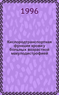 Кислородтранспортная функция крови у больных возрастной макулодистрофией : Автореф. дис. на соиск. учен. степ. к.м.н. : Спец. 14.00.08. Аннотация: