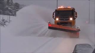 Очистка дороги от снега на большой скорости