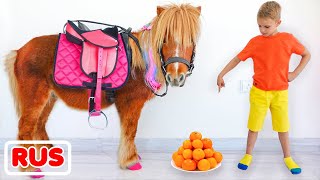 У Влада есть кот, но он хочет другого питомца. Мама приносит домой новых животных: собаку, попугая, кролика, козу, кур и пони. Теперь у Никиты ...