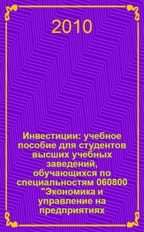Теплова Т. В. Инвестиции : учебник для бакалавров : для студентов высших учебных заведений, обучающихся по направлению 080100 "Экономика" : [углубленный курс] / Г.В. Теплова; Высш. шк. экономики, Нац. исслед. ун-т. - Москва : Юрайт ИД Юрайт, 2012. - 723, [1] с. : ил. ; 24 см. - (Учебники НИУ ВШЭ). - (Учебно-методическое объединение рекомендует). - (Бакалавр). - Библиогр. в подстроч. примеч.