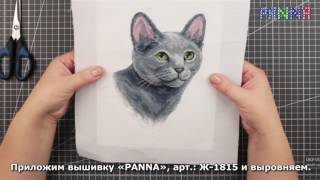 Оформление в рамку вышивки по набору PANNA, арт.: ЖК-1815 «Русская голубая кошка»