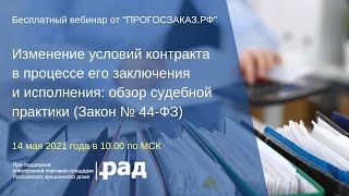 14 мая 2021 года в 10:00 по МСК состоялся вебинар на тему: "Изменение условий контракта в процессе его заключения и ...