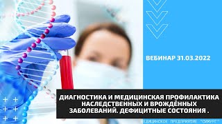 Диагностика наследственных и врождённых заболеваний. Дефицитные состояния. Вебинар 31.03.2022